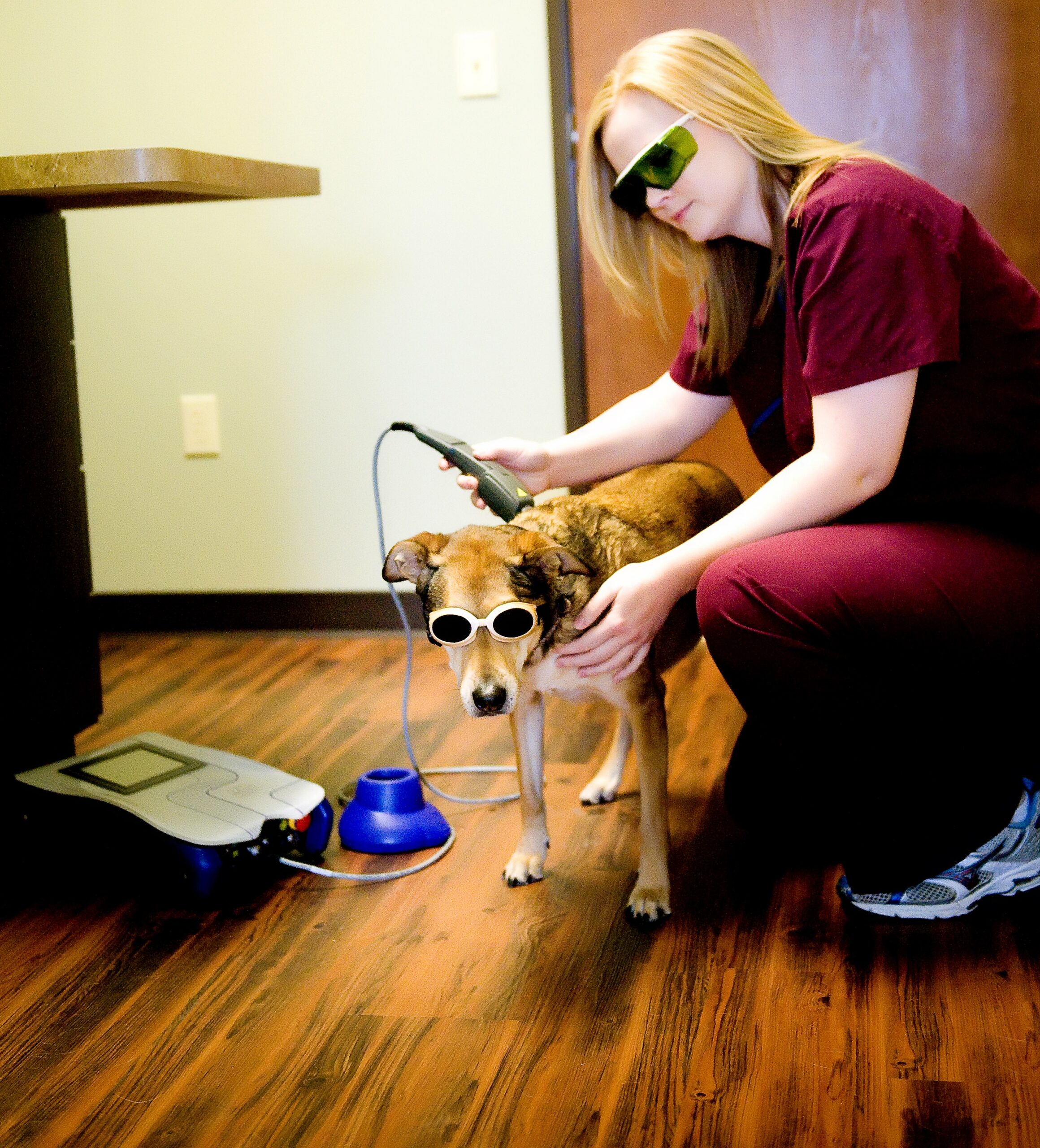 We use a CO2 surgical laser in place of a surgical blade for all of our surgical procedures. The use of a surgical laser eliminates the need for tourniquets and other hemostatic agents during orthopedic and soft tissue surgeries. The CO2 laser cauterizes the vessels and nerves as the procedure is performed which greatly decreases pain and bleeding during and after the procedure. We also use local anesthetics and multimodal pain relief to keep your pet as comfortable as possible.